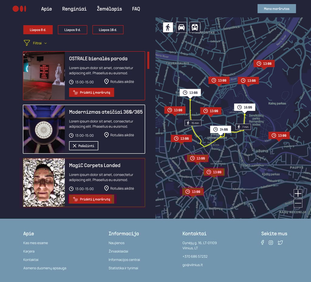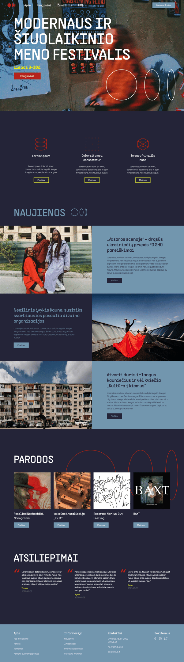 Website for a modern art festival features an engaging homepage and an interactive festival map with event details. Immerse yourself in contemporary art and explore the festival's exhibits, artists, and schedules. Discover how art and technology blends to enhance your festival experience.