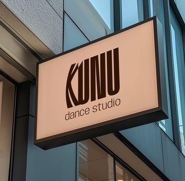 Kunu is a contemporary dance and ballet studio focused on the quality of dance and movement, artistic education, and the development of each individual's personal dance language and creative expression. The logo embodies Kunu Dance Studio's commitment to excellence in contemporary dance and ballet, fostering individuality, artistic education, and bold creative expression. The design process focused on merging elements of fluidity, elegance, and modernity to reflect their mission.